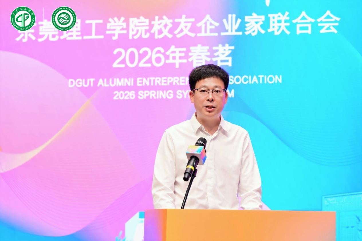 胡钦华首先向长期以来心系母校发展的广大校友及各界友人表达了衷心的感谢,并回顾了学校过去一年在学科建设、人才培养、综合改革等方面取得的办学成果。在“十五五”规划开局的关键之年,他向校友企业家们提出三点期待:一是希望各位校友企业家始终紧扣粤港澳大湾区建设这一国家战略大局,精准贴合东莞“智创优品、和美宜居”城市发展战略目标,立足自身行业领域优势,盘活优质产业资源,在科技成果转化、核心技术联合攻关、高端智库建设、产业人才共育等方面,与母校深化全方位、深层次合作;二是希望校友企业家联合会持续发挥桥梁纽带作用,打造常态化、高质量的学习交流与资源对接平台,助力各位校友把握行业趋势、抢抓发展机遇;三是希望广大校友企业家继续深度参与母校建设,以资金支持、资源对接、文化共建等多种形式助力母校发展,共同打造更有内涵、更具特色、更富温度的莞工校园文化。