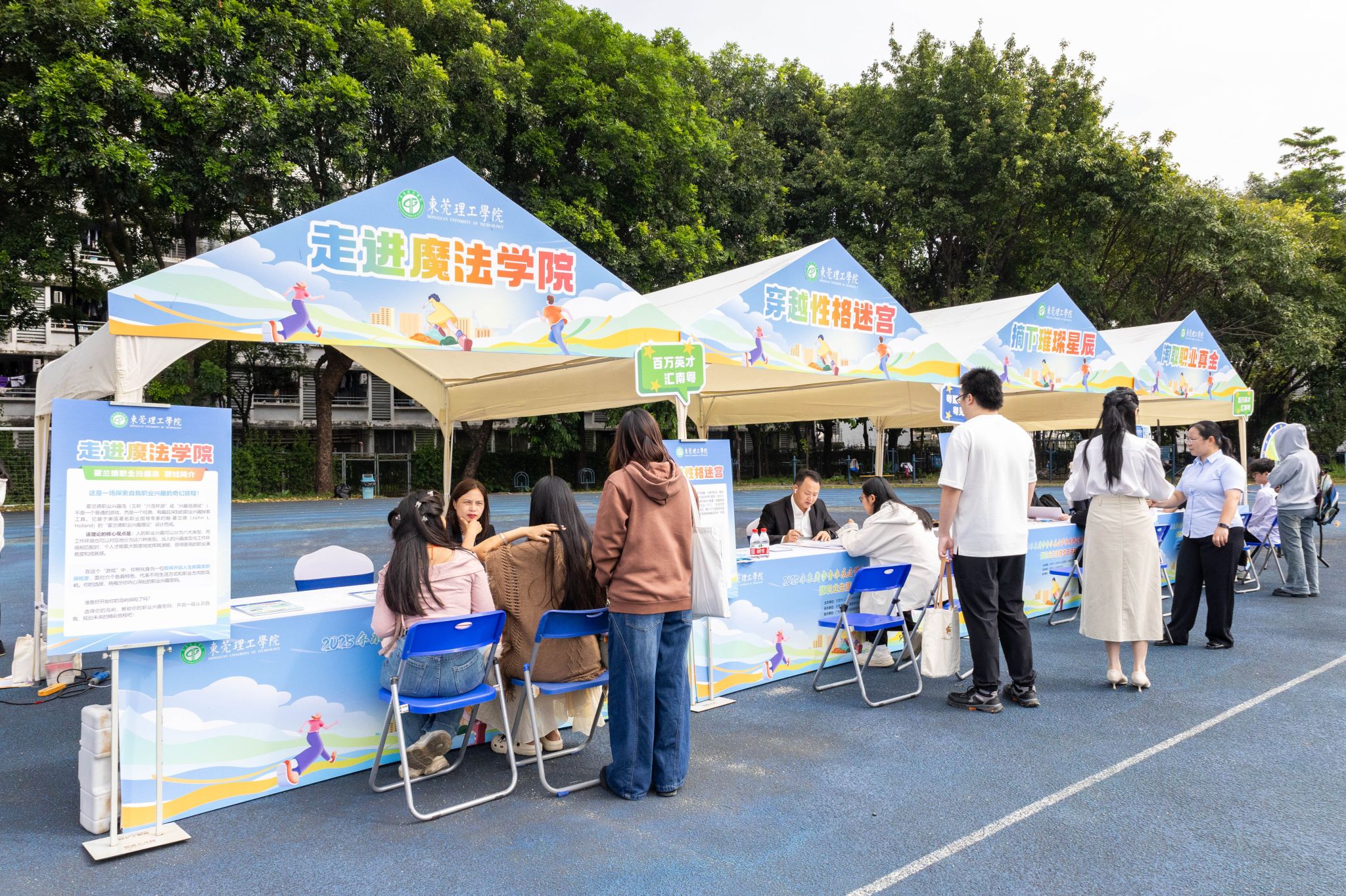 10月25日上午,由广东省教育厅主办、东莞理工学院承办的“就在南粤”广东省2026届普通高校毕业生系列供需对接活动(东莞地区专场)(以下简称为“秋季招聘会”)在松山湖校区假草田径场举行。同期,还举办了职业生涯体验日,现场设置“生涯与就业服务功能专区”“校企合作交流区”等,为用人单位和求职学子打造全方位护航的交流择业平台。