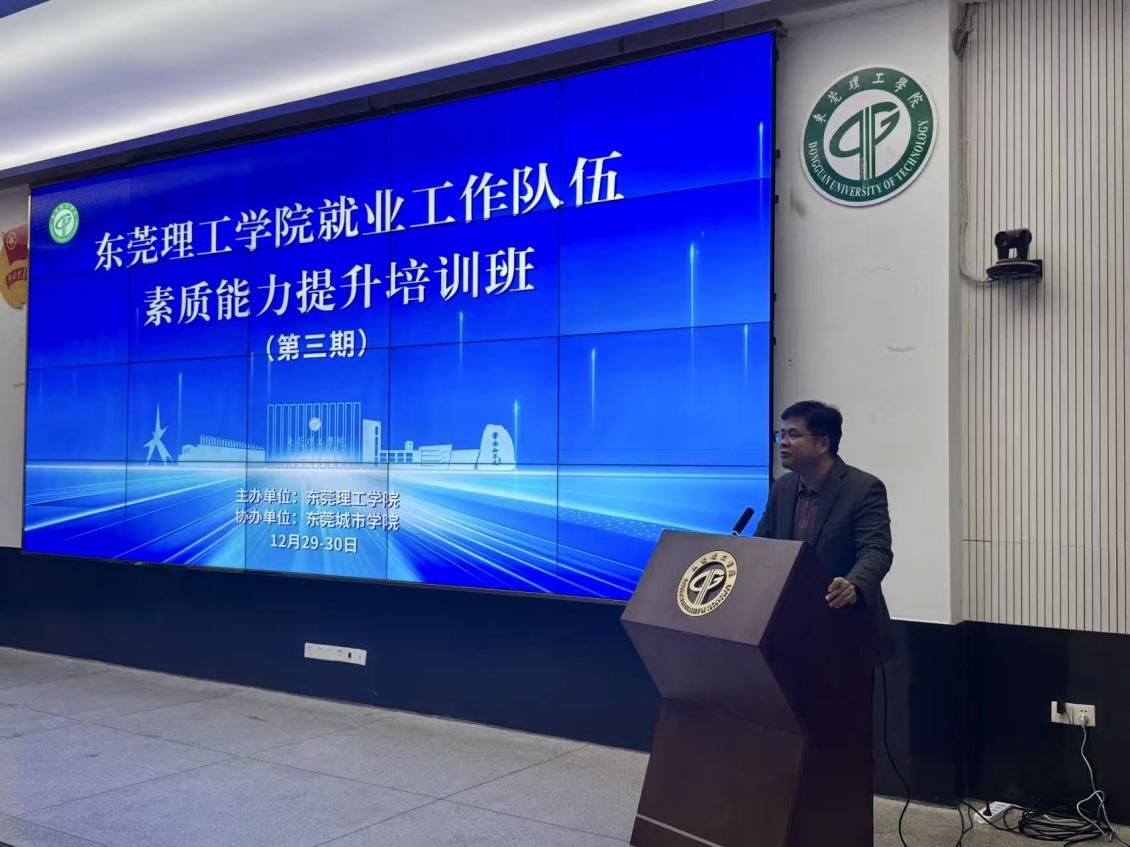 为深入贯彻落实党中央、国务院关于高校毕业生就业工作的决策部署,系统性锤炼学校就业工作队伍的专业素养与综合履职能力,进一步深化与东莞城市学院党建结对共建水平,12月29日至30日,东莞理工学院与东莞城市学院联合举办的“就业工作队伍素质能力提升培训班(第三期)”在我校松山湖校区圆满举行。东莞城市学院就业工作骨干、学校就业工作辅导员、教师代表共计60余人参加了本次培训,广东省高等学校毕业生就业促进会常务副会长向丹阳,学校就业创业与校友工作部部长魏东初及各二级学院党委副书记出席了开班仪式。